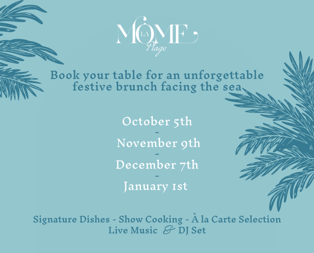 On Sundays, La Môme Plage transforms into a haven of festivity where time stands still for a brunch. Let yourself be carried away by the unique Mediterranean ambiance that is the signature of our establishment. Between refined flavors and sunset over the azure horizon, our Sunday Brunches have become an unmissable rendezvous on La Croisette.